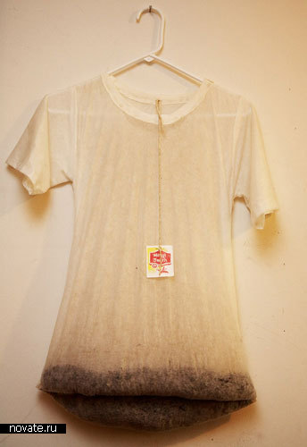 А вот дизайнер Meryl Smith обратила и создала уникальный проект. Как мы знаем, футболка на английском языке звучит как «T-shirt». На основе одинакового звучания со словом «tea» (чай) она создала «Чайную футболку». Не знаю, стоит ли тут искать какие-либо еще аналогии? Ведь все англичане обожают чай, они просто помешаны на нем. И такая футболка была бы отличным подарком истинному ценителю чая. Правда, носить ее никак нельзя. В графе «Материалы» у этой футболки значится сухой чай. Так что это не просто название, а футболка действительна наполнена чайными листиками. Жаль, но надеть ее не получится. Хотя и не нужно это, ведь идея хороша своей оригинальностью. Никому другому и в голову не приходило, что футболка может быть такая из-за своего названия.
