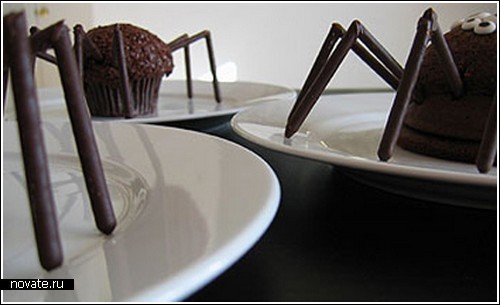 И вот эти шоколадные пирожные выполнены именно в форме пауков. Дело все в том, что приближается День всех святых, и нужно как-то к нему готовиться, не так ли? Костюм ведьмы, дьявольские рожки и трезубец – это все, конечно, хорошо, но неплохо бы и покушать чего-нибудь особенного. И эти паучки станут отличным десертом!