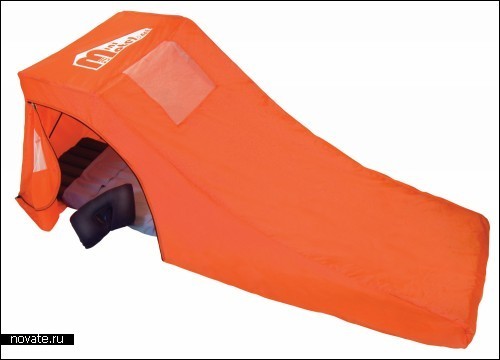 Неизвестно, правда, насколько радушно служащие аэропорта воспримут туриста, раскладывающего свой оранжевый домик с явным намерением поспать пару часов, но компания Mini Motel, занимающаяся изготовлением складных домиков-палаток, рассчитывает на то, что их основными заказчиками будут именно аэропорты, которым несомненно нужны передвижные спальные места, чтобы иметь возможность обеспечить крышей над головой всех страждущих в случае стихийных бедствий или произодственных ситуаций. А если учесть, что цена вопроса - $50, что сравнительно недорого, то желающих приобрести себе передвижную спальню будет предостаточно.