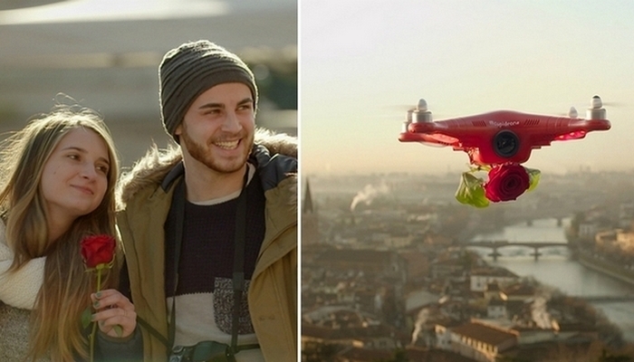 Креативное агентство Kingsday по заказу лидера мирового цветочного рынка голландской фирмы «The Flower Council of Holland» провело ко Дню Влюбленных красивую и эффектную кампанию по романтической доставке цветов. В одном из самых романических в мире городов, в Вероне, где жили Ромео и Джульетта, запустили дрона-Купидона.