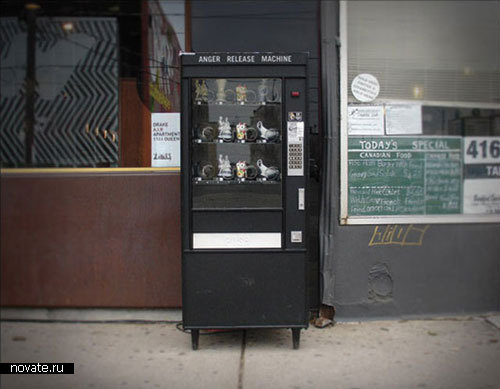 Дизайнеры Ronnie Yarisal и Katja Kublitz озаботились этой проблемой и создали свой проект. Он получил название «Пассивная агрессивная машина избавления от гнева». Да уж, название получилось очень длинным, но ведь по-другому ее и не назовешь. На самом деле, это – торговый автомат, которые можно найти в любой точке мира. Только вот продается в нем не кофе в пакетиках и уж тем более не булочки. Как можно увидеть, там внутри находится самый настоящий дорогой китайский фарфор!