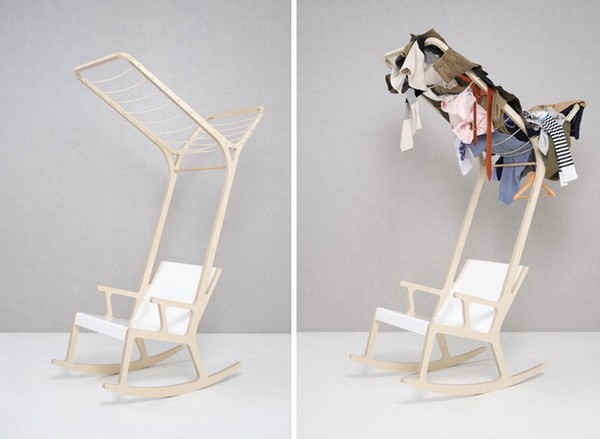Кресло-качалка Objet E позволит вам не только избавиться от стресса и успокоить расшатанные нервы, качаясь вперед и назад, но и просушить при этом постиранную одежду и белье.