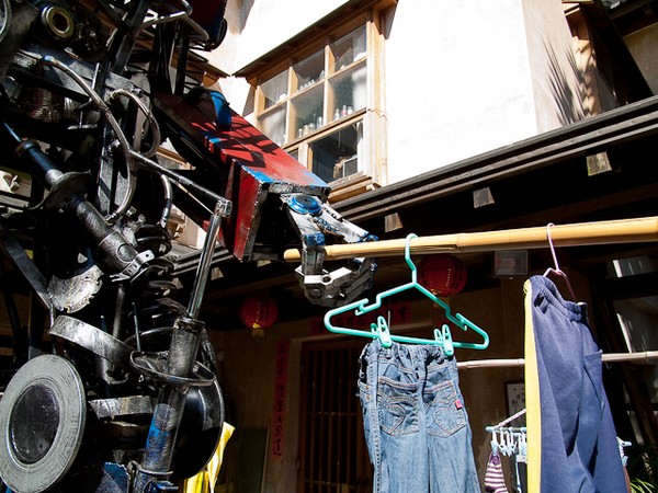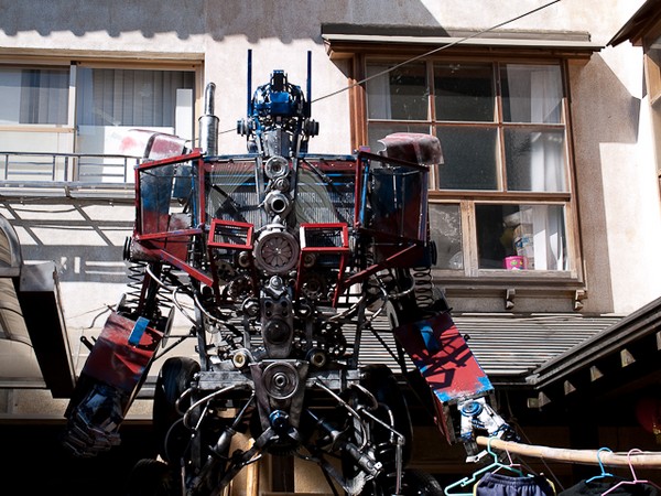 Один отец на Тайване решил порадовать своего сына, большого любителя фильмов и мультиков про роботов-трансформеров. Он создал огромную копию Оптимуса Прайма. А, чтобы та не просто занимала место во дворе семьи, он объединил ее с сушилкой для одежды.