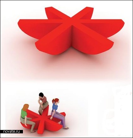 Эта скамейка была придумана турецким дизайнером Nil Gulari и получила имя «Aster-ist». Правда, звездой это назвать сложно, ведь концов у нее не пять, как у стандартной, а шесть, но здесь это не так важно. Да и с шестью куда удобнее. Ее можно приобрести себе на дачу, расставить в кафе и ресторанах, на выставках и в залах ожидания, оборудовать такими дворы и площадки – словом, применений масса.