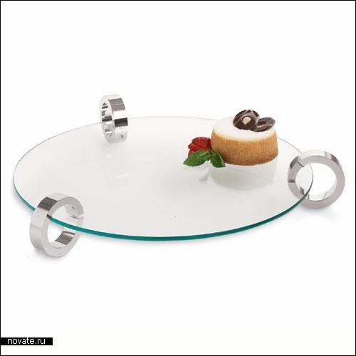 А на этой тарелке далеко не уедешь. Хрупкая стеклянная пластина на таких же хрупких посеребренных колесиках будет идеально смотреться на небольшом журнальном столике, выплненном в стиле такого же хай-тек минимализма. Продукция компании CHIASSO.