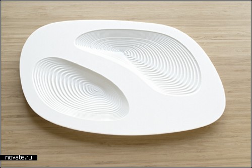 Набор керамической посуды Grooveware от дизайнерской студии Table Studio. Посуда для настоящих педантов, поскольку она не только чисто-белая, без дополнительных украшений, но еще и со строго определенным местом для размещения столовых приборов. Так что вилки, ложки, китайские палочки и даже пепельница, - все включено в этот набор, и разложено по своим местам.