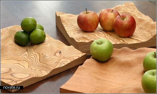 Если бы это были просто деревянные тарелки, было бы неинтересно. Но эти деревянные тарелки непростые, - они точь-в-точь повторяют ландшафт той части земного шара, какую только выберет заказчик с помощью он-лайн сервиса Google Maps. Называется этот необычный кухонный девайс Fluid Earth, а оформить заказ и выбрать свой ландшафт можно на сайте производителя.