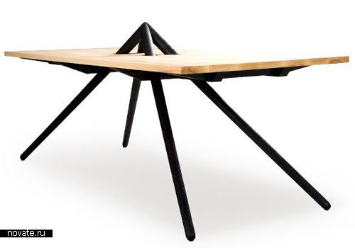 А третьим проектом является стол, который также весьма необычен. Ножки, на которых он держится, в буквальном смысле, протыкают столешницу насквозь! И что бы вы ни собирались на него поставить, бугорок этот никуда не исчезнет.