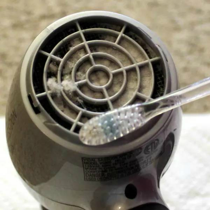 Не стоит забывать о чистке фена, ведь со временем он забивается жжеными волосами, пылью и теряет былую мощь. Время от времени прочищайте воздухозаборную решетку с помощью старой зубной щетки.