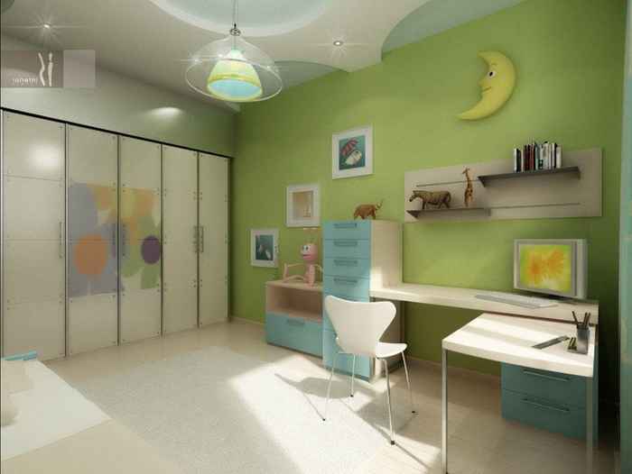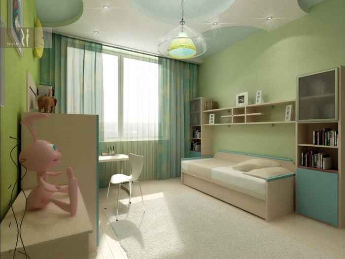 24. Легкий салатовый интерьер для детской комнаты