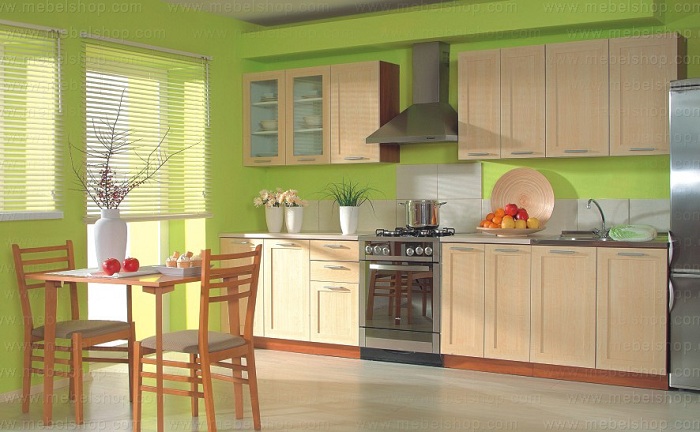 Яркий салатовый интерьер на кухне может стать просто оптимальным и очень оригинальным для оформления комнаты подобного типа.