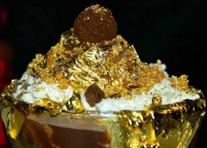 Возможно, одними из самых известных шоколадных конфет всех времен является Frrrozen Haute Chocolate от Serendipity 3. В основном это горячий шоколад с использованием 28 экзотических и редких видов какао-бобов, золотых листьев и трюфелей. Кроме того, блюдо изготовлено из золота и бриллиантов; ложка сделана из золота; и у основания блюда есть браслет из золота и бриллианта, обернутый вокруг него. Закончив лакомиться необычным блюдом стоимостью $ 25 000, браслет и золотую ложку можно забрать домой.