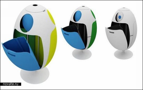 Свой проект корзины для мусора изобретательный итальянец представил на London Design Festival. Хотя, какая же это корзина? Изделие больше похоже на гигантское яйцо невиданной птицы, или же НЛО необычной формы, но уж никак не пластмассовое ведерко для объедков. Хотя тоже выполненное из пластика, правда, переработанного.