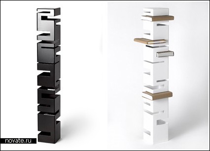 Как можно заметить, толщина ячеек тут разная, где-то влезут только тонюсенькие книги-брошюрки, а где-то поместится и энциклопедия. Конечно, это удобно тем, у кого книг мало, все они разные и вполне подойдут для этой полки. Но вот тем, у кого книг полно, целые собрания сочинений, она точно не сгодится. Хотя полки довольно любопытны и есть они сразу в трех цветах – белом, черном и цвете стали. Кстати, сделаны они как раз из стали. Плюс это или минус? Решать тем, кто собирается приобрести этот предмет мебели.