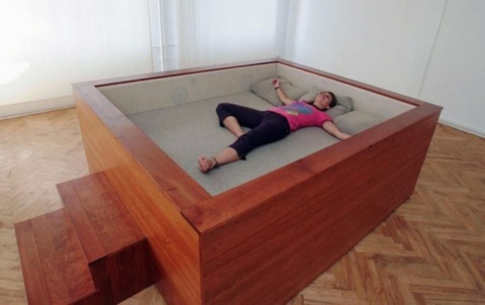 Kaffe Matthews создали следующую двуспальную кровать не для продажи, а в качестве выставочного экземпляра. Она оснащена встроенными динамиками специально для меломанов, которые не могут заснуть без любимой музыки.