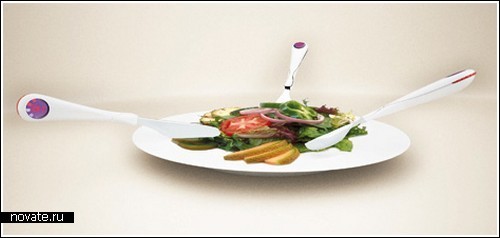 Вилка сможет анализировать состав и количество жиров, белков, сахара, находящихся в продукте. Ложка, как понятно и логично, измеряет вес, а нож – температуру пищи. В целом же эта система создает небольшое сообщение о том, что вы едите, насколько это полезно и питательно. Затем вы это сообщение прочитаете на мониторе компьютера. Кажется глупой эта затея? Совсем нет, если у вас диабет или же вы сидите на диете. Тут этот столовый прибор может очень даже помочь. Прошли времена, когда вам приходилось врать вашему врачу: «Да, я съел свои пять порций овощей!» Теперь вы – доктор для самих себя. И обманывать никого не нужно, да и бессмысленно это.
