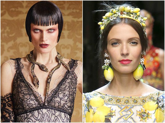 Пожалуй, мир удивился бы, если бы модельеры не представили ничего удивительного или креативного. Поэтому в коллекциях Moschino, Dolce & Gabbana, Valentino и других брендов можно встретить украшения в виде дорожных знаков, лезвий, цветов и змей.