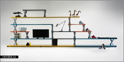 В стеллажной системе Александра Лоттерштейна (Alexander Lotersztain) вы не найдете симметричных линий и округлостей (по крайней мере, автор проекта считает именно так). Ну не любит он ординарный подход к созданию элементов дизайна! Ему по душе нечто более оригинальное, неизведанное, потому и стеллаж, о котором пойдет речь, получил название X-System. Почти X-Files получилось.