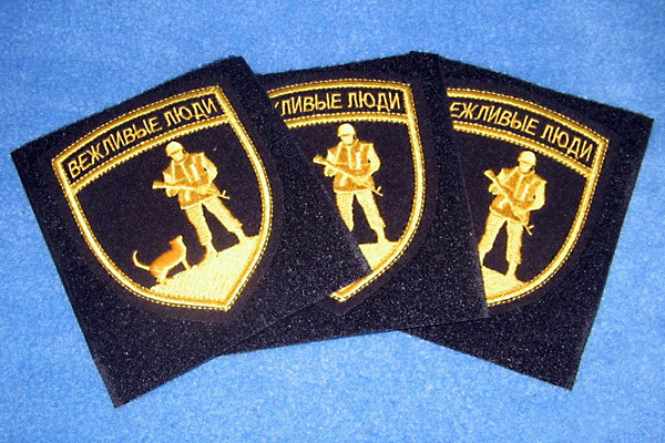 В России появилась в продаже сувенирная продукция под брендом "Вежливые люди". Что интересно, на шевроне с изображением главного политического мема 2014 года - вооруженного человека в новейшей военной экипировке без опознавательных знаков - изображен другой известный интернет-мем - котик или "котэ".