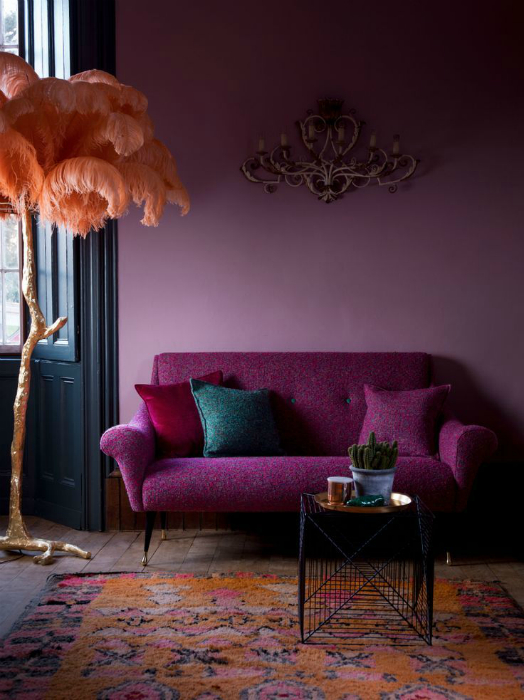 Потрясающая ярко-розовая тахта станет настоящей изюминкой комнаты.