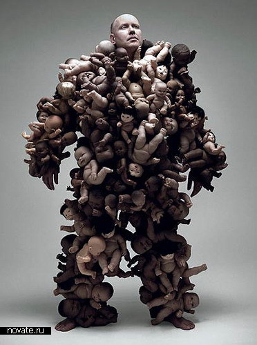 Младенцы, заковавшие мужчину в тесный скафандр – эта работа заставляет задуматься об актуальной проблеме абортов, о глубоком желании почти каждой женщины продолжать род и страхе отцовства, живущем во многих мужчинах.