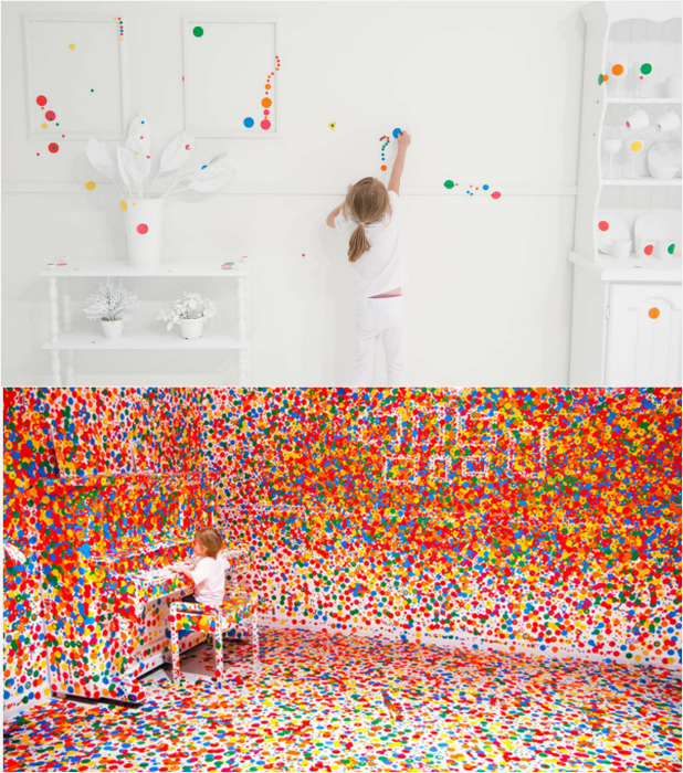Белоснежные стены и специальные цветные наклейки позволят ребенку проявить себя и создать свой собственный уникальный интерьер.