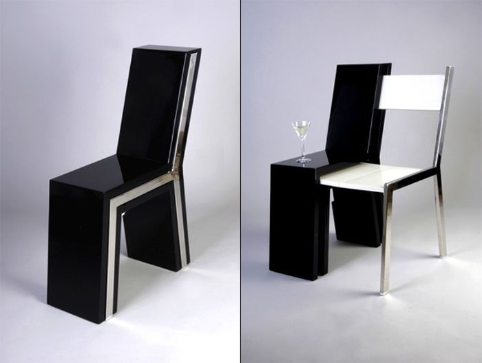 Этот стул можно спрятать за дверью, поставить в коридоре или гостиной, даже в кухне он не будет мешать. А всё потому, что он имеет нестандартные размеры, выглядит очень стильно и при необходимости раскладывается таким образом, что рядом со стулом оказывается удобный столик.