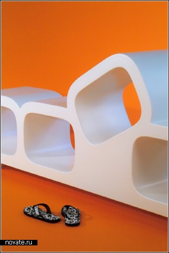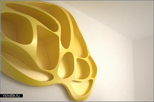 Не правда ли, - эти полки очень похожи на ласточкины гнезда, вырытые на склонах песчаных или глиняных карьеров? Автором этих "гнезд", в которые можно положить все, что должно находиться на полках, является итальянский дизайнер Джорджио Бискаро (Giorgio Biscaro) из компании , а называется его проект Protozoism.