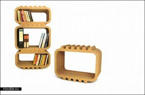 Жертва землетрясения или кривых ручек мебельщиков, которые собирали стеллаж? Полет фантазии немецких креативщиков из компании Foundvo! Кстати, мысль о землетрясении была почти правильной, - муза посетила авторов девайса, когда они увидели полуразвалившуюся стеночку из сложенных друг на дружку коробок. так и появился стеллаж под названием Stacked.