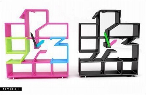 Напоследок вспомним о времени. Дизайнерам из французской компании удалось совместить две полезных в интерьере вещи в одну, и в результате у них получилось нечто под названием Time-shelf. Стеллаж и часы, которые приделаны не просто для красоты, а чтобы на самом деле показывать точное время. такой стеллаж будет полезен в школьной или студенческой библиотеке, хотя он вполне может разнообразить и домашний интерьер.