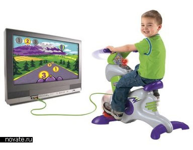 Да, без этой штуки с громоздким названием список точно был бы неполным. «Умный велосипед» - это стационарный велик, ориентированный на дошкольников, который подключается в аудио- и видеопорты вашего телевизора. Малыши катят вперед к приключениям, которые происходят на ТВ-экране. Комплектное программное обеспечение, «Обучающее приключение», включает в себя три опции: Вождение, Обучающие аркадные игры и Большая гонка. В режиме Вождения ребенок может кататься по виртуальным мирам, собирая по пути мини-блоки интересной информации. Обучающие аркады предназначены для образования дошкольников. Используя джойстик, ребенок может учить буквы, цифры, фигуры и так далее. Ну а Большая гонка – это, конечно, самое захватывающее приключение, скоростной заезд в экране телевизора.