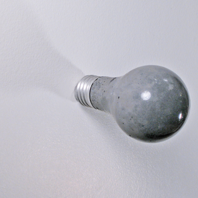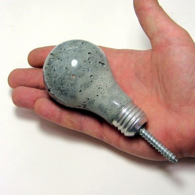 Лампочка сделана из цементной смеси, которая заливалась в настоящую лампу. Потом стекло удаляли, и оставалась абсолютно гладкая и сверкающая вешалка. Разумеется, в процессе производства в лампе образуются небольшие дырки, причем, учитывая что весь труд производится вручную – каждый раз разные. То есть две таких одинаковых лампы вы не найдете.