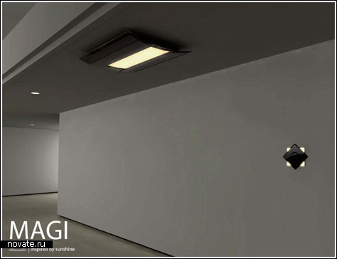 У лампы (или люстры?) «MAGI» несколько другой принцип работы. В принципе, это самая обычная лампа, но вот выключатель у нее особенный. Да, кажется, что тут – самая традиционная кнопка. Только на нее нужно не нажимать, как в других светильниках, а поворачивать. Соответственно, пока вы поворачиваете кнопку, лампа и «раскрывается». Жаль, что она не сделана в виде какого-нибудь цветка или чего-то более интересного, но дизайнеры решили так. Простая прямоугольная форма – минимализм во всем. С одной стороны, в этом есть что-то утонченное, красивое – выключатель квадратной формы, лампа – прямоугольной. Как раз для офисов, кабинетов, коридоров она отлично подойдет. Может, и для кабинета дома, но вот для гостиной или спальни? Скорее нет, чем да.