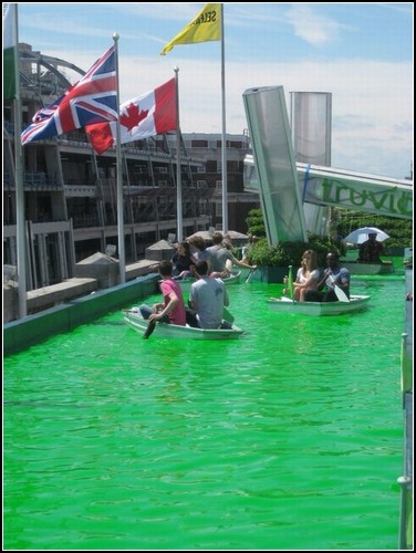Конечно же, канал этот на крыше магазина появился не просто так. Сделан он с двумя целями. Первая – это реклама сахарозаменителя Jell-O-ish. Ведь на крыше также размещено кафе Crystal Cafe, где посетители этого аттракциона смогут посидеть в ожидании своей очереди покататься на лодке или уже после прогулки на ней, и попробовать коктейли, сделанные с использованием указанного ингредиента.
