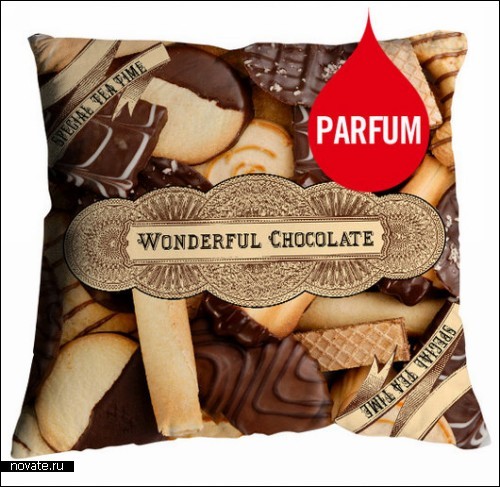 Французы знают толк в ароматах, и кроме шоколадных, у них есть цветочные, карамельные, ванильные и прочие подушки, причем как ароматизированные, так и обычные, с красивыми картинками на наволочках.