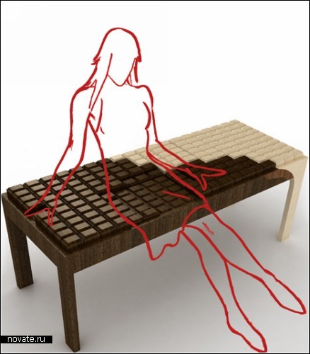 А вот лавочка в сочетании разных пород дерева - очени интересная )А судя по картинке - плитки шоколада еще и проваливаются под сидящим - интересный эффект )