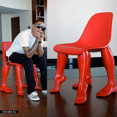 Сначала была пара стульев в виде обнаженных тел мужчины и женщины, теперь же – стул с ножками, как у человека. Вы когда-нибудь задумывались, что «ножки» у мебели могут быть такими? Оказывается, могут! Причем тут тоже присутствуют как мужчина, так и женщина, а точнее – их ноги. Женские – впереди, а мужские – позади. Надеюсь, стул никуда убежать не может? Не хотелось бы с ним расставаться.