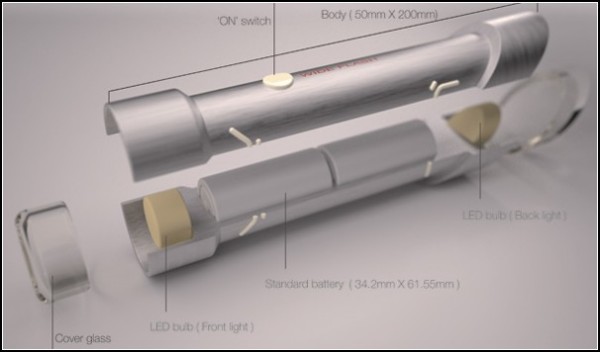 Этот необычный туристический фонарь был придуман южнокорейским дизайнером по имени Junwon Yang. Концепт получил название Emergency Flashlight, что означает "чрезвычайный фонарик". Но предназначен фонарь не для чрезвычайных ситуаций, а для самой обычной - похода гуськом по узкой лесной тропе.