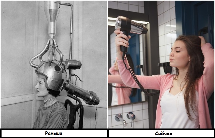 Современные фены удобные, компактные, простые в использовании, за несколько минут способны высушить волосы. Чего не скажешь о приборах, созданных в конце XIX века. Первый фен представлял собой большой колпак, который крепился…к дымоходу газовой трубы! Да-да, и это вовсе не шутки. Женщина садилась под него и ждала, пока волосы высохнут. Следующим интересным изобретением стал фен, который состоял из емкости, заполненной кипятком. Держась за деревянную ручку, женщина должна была провести этой горячей емкостью по волосам несколько раз, пока пряди не станут сухими.