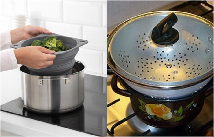 Ни для кого не секрет, что дуршлаг нужен для слива воды после варки или мытья продуктов. Однако многие пользователи не спешат ограничиваться только этим функционалом. Начнем с того, что дуршлаг часто сравнивают с пароваркой. Почему? Пароварочная машина обрабатывает продукты горячим паром. Дуршлаг сможет выполнять эту же функцию, но есть условия.