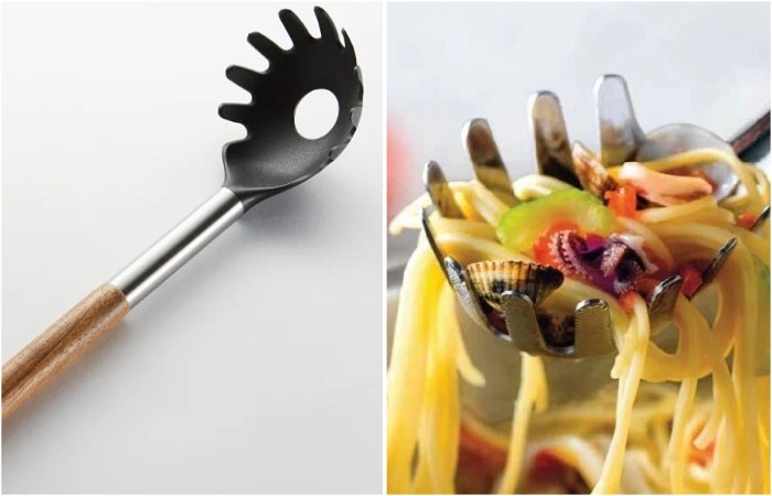 Отверстие в ложке для спагетти выполняет не только функцию дуршлага.