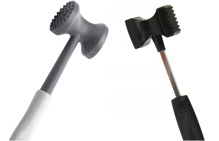 Так вот, каждая из сторон молотка имеет свое предназначение. Шипованная идеально подходит для свинины и курицы, поскольку ее острые зубцы делают мясо более нежным. Кстати, ее же можно использовать для отбивных и котлет.