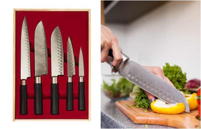 Как вы уже догадались, это вовсе не дизайнерский ход, а функциональное решение. Выемки на лезвиях создают прослойку между продуктом и ножом, а значит, к лезвию не липнут влажные или липкие ингредиенты. Также выемки снижают уровень трения, продлевая тем самым остроту ножа и предотвращая деформацию кромки.