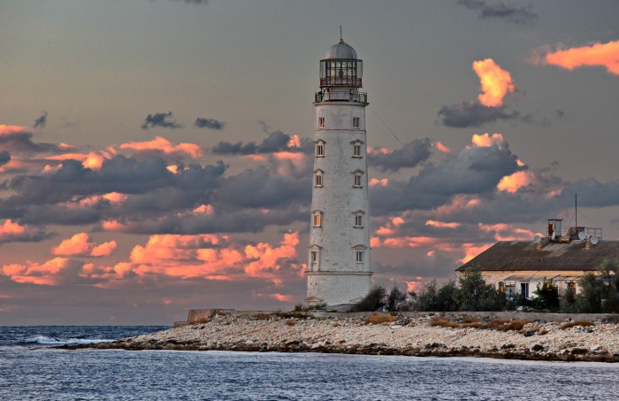 Севастопольский (он же Херсонесский) маяк был построен в 1816 году, во времена царской России. Предназначался он для безопасного захода кораблей в бухту. Первоначально маяк имел восьмиугольную форму и был оснащён масляными лампами с отражателями. Во время крымской войны маяк намеренно разрушили, дабы он не служил ориентиром для вражеского флота и лишь после окончания баталий, его вновь восстановили. Однако за одной разрухой пришла другая. Великая отечественная война не щадила никого, в том числе и маяк, который был разрушен под ноль. Светлая полоса для маяка началась в 1951 году, когда его отстроили с нуля. Существует и функционирует он по сей день (хоть и в автономном режиме). Дальность света распространяется аж на сорок километров, освещая путь. На территории маяка находится кладбище с захоронением английских моряков, которые погибли во времена крымской войны.