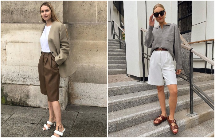 Бермуды идеально подходят для создания официального, повседневного, романтичного или торжественного образа, а свободный крой помогает чувствовать себя в них комфортно даже в жару. Если вы наденете шорты с хлопковой рубашкой или атласной юбкой, смело отправляйтесь в них на работу, а яркая льняная модель в тандеме с базовой футболкой подойдет для прогулки.