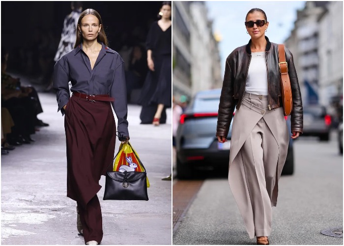 Вряд ли этот тренд прочно войдет в массы – чересчур смелый, но если вы цените стиль и комфорт, то обязательно посмотрите в его сторону. Беспроигрышный вариант – легкая юбка-брюки, которая красиво струится при движении. Она создает изящный, женственный, расслабленный силуэт. Такую одежду лучше носить с каблуками или босоножками на платформе, но если для вас важнее всего удобство, то можете сочетать вещь и с кроссовками. Верх должен быть максимально лаконичным, чтобы не перегрузить образ.