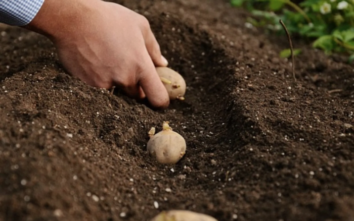 Май - также время для высадки картофеля, и определяется это по цветению берёзы, что означает — почва достаточно прогрелась. Оптимальная температура от шести градусов. Клубни к посадке нужно готовить заранее, проращивать, озеленять, стимулировать рост. К концу мая показавшийся картофель необходимо начать пропалывать, потому что также появятся и сорняки. Для хорошего развития картофеля их необходимо удалять. Кроме прополки также необходимо начать окучивать и рыхлить землю. Так будет открыт доступ корней к кислороду, они станут более мощными. Также меньше будут вымываться полезные вещества.