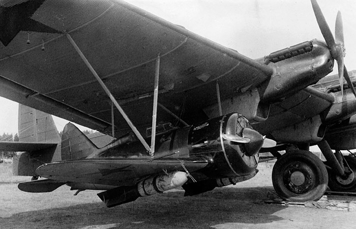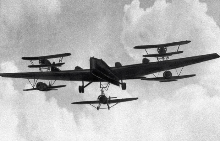 Своего пика как бомбардировщик ТБ-3 достиг в середине 1930-х, но уже тогда на него начали смотреть шире — не как на средство доставки бомб, а как на базу для экспериментов. На нём отрабатывались сразу несколько нестандартных схем, самой известной из которых стало «Звено». ТБ-3 в этом проекте превращался в носитель истребителей, которые цеплялись к нему на внешних пилонах и отделялись в воздухе. Поначалу это выглядело как упражнение в акробатике, но система сработала: в 1941 году такие комплексы использовали для удара по нефтяной инфраструктуре на территории Румынии. Истребители И-16 с подвешенными бомбами атаковали цели, а сам ТБ-3 возвращался домой. Всё происходило без аэродромов ближнего базирования и позволило нанести удар там, куда иначе было не дотянуться.