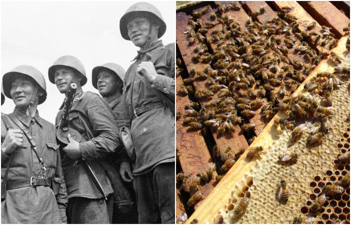 Во время боёв под Смоленском, когда Великая Отечественная война только началась, советские солдаты часто отступали, теряя много своих товарищей. Но иногда сохранить жизни бойцов помогали представители фауны, например, пчёлы. Как-то взвод РККА отступал из разрушенной деревни у Смоленска, а враг наступал на пятки. И тогда один из солдат, пытаясь не дать врагам догнать их, додумался перевернуть стоящие рядом ульи. Расчёт оказался верным: потревоженные пчёлы выбрались наружу как раз когда немцы подошли, и набросились на врагов Отечества со всей мощью своих жал. В итоге солдаты вермахта сами бежали от медоносных насекомых, а советский взвод сумел отступить.