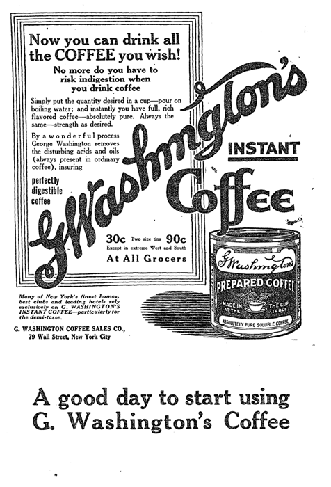 Реклама первого растворимого кофе от 1914 года. /Фото: ru.wikipedia.org